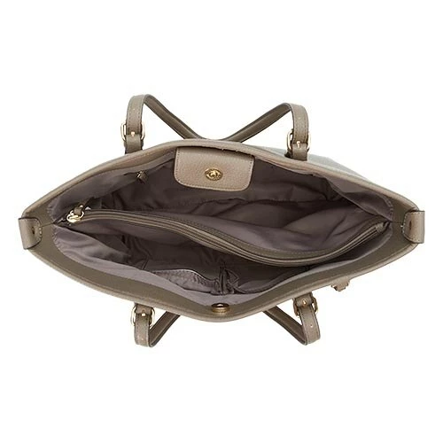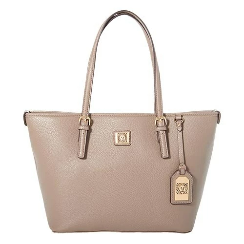 Anne Klein dusty bronze medium tote features a top zipper, an exterior slip pocket and interior organizational pockets. Handle drop: 10″. Dimension: 10″H x 16″W x 5″D.