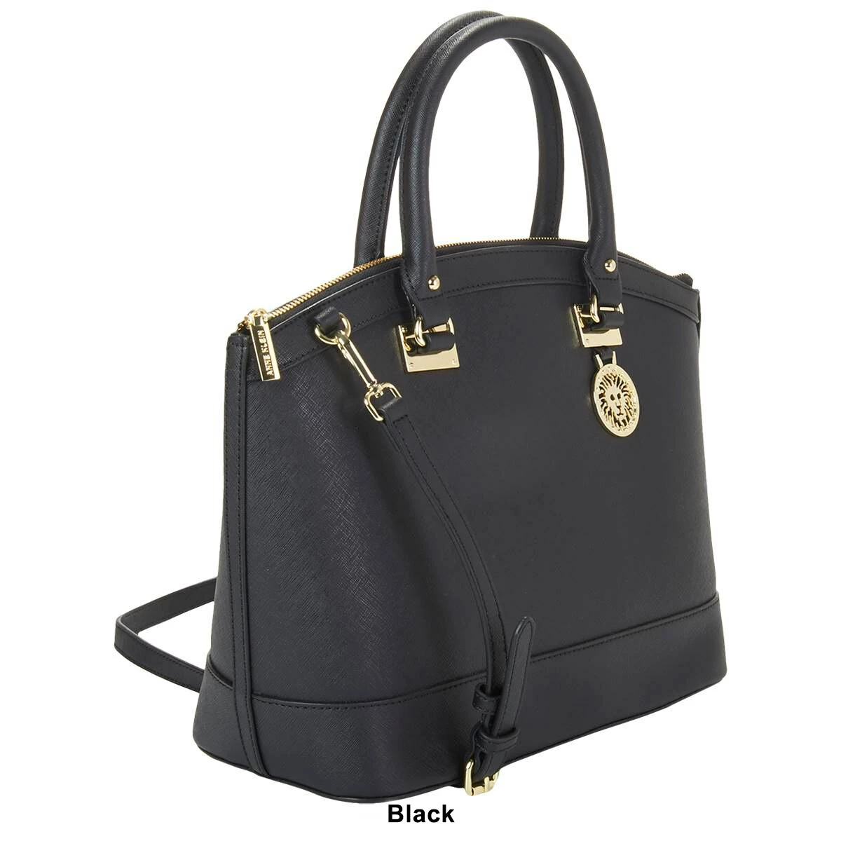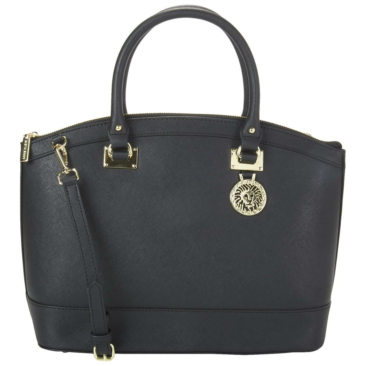 A roomy center compartment adds storage depth to this Anne Klein New Recruits dome satchel with top zip closure. Features include dual drop handles, removable/adjustable shoulder straps, and a hardware logo accent.