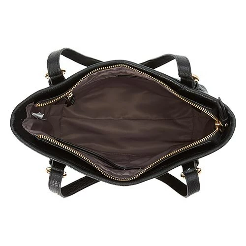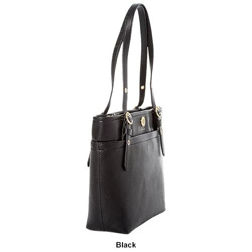 Anne Klein small pocket tote features a top zipper entry, a front slip snap close pocket, a back slip pocket, and interior organizational storage.