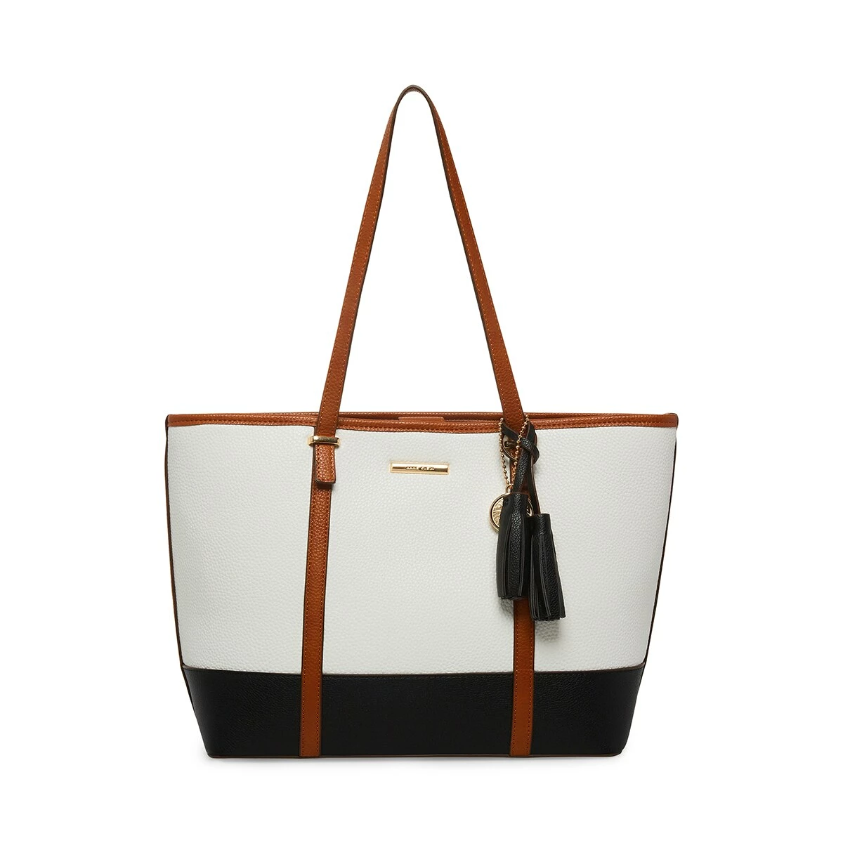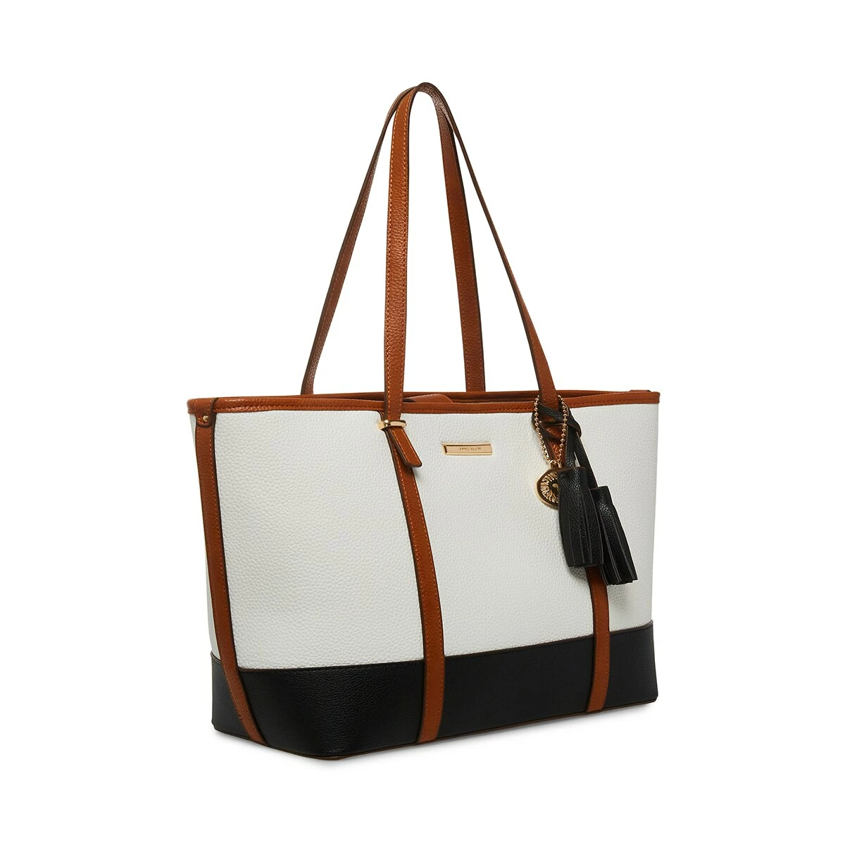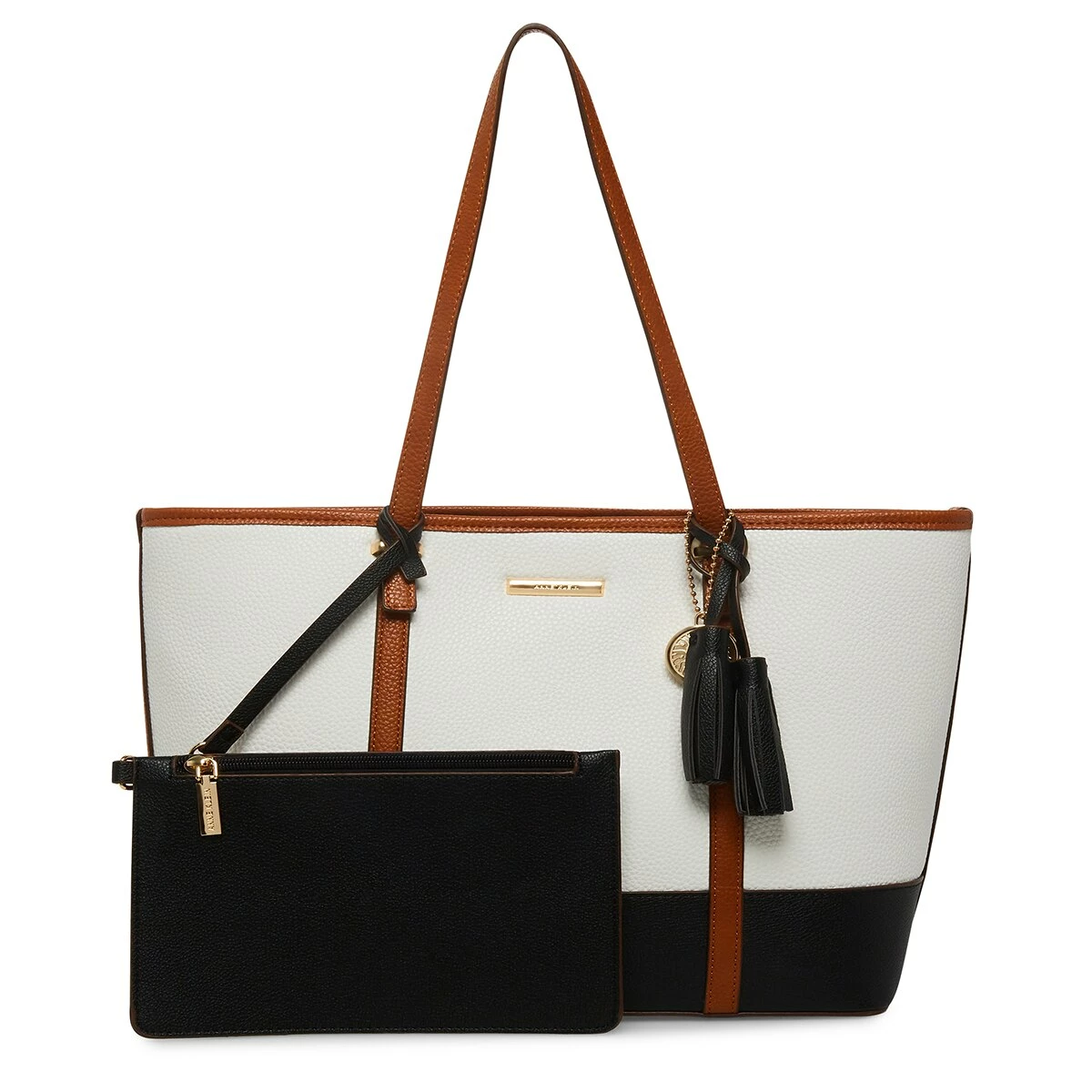 This Anne Klein tote with tassel is for the real tote carriers out there. Color blocked in a beautiful, but simplistic set of colors, this bag will easily become your outfit go to. Packed with functionality including a center zip compartment and multiple interior pockets, this tote also comes with a pouch, a lion logo key fob, and a double tassel.