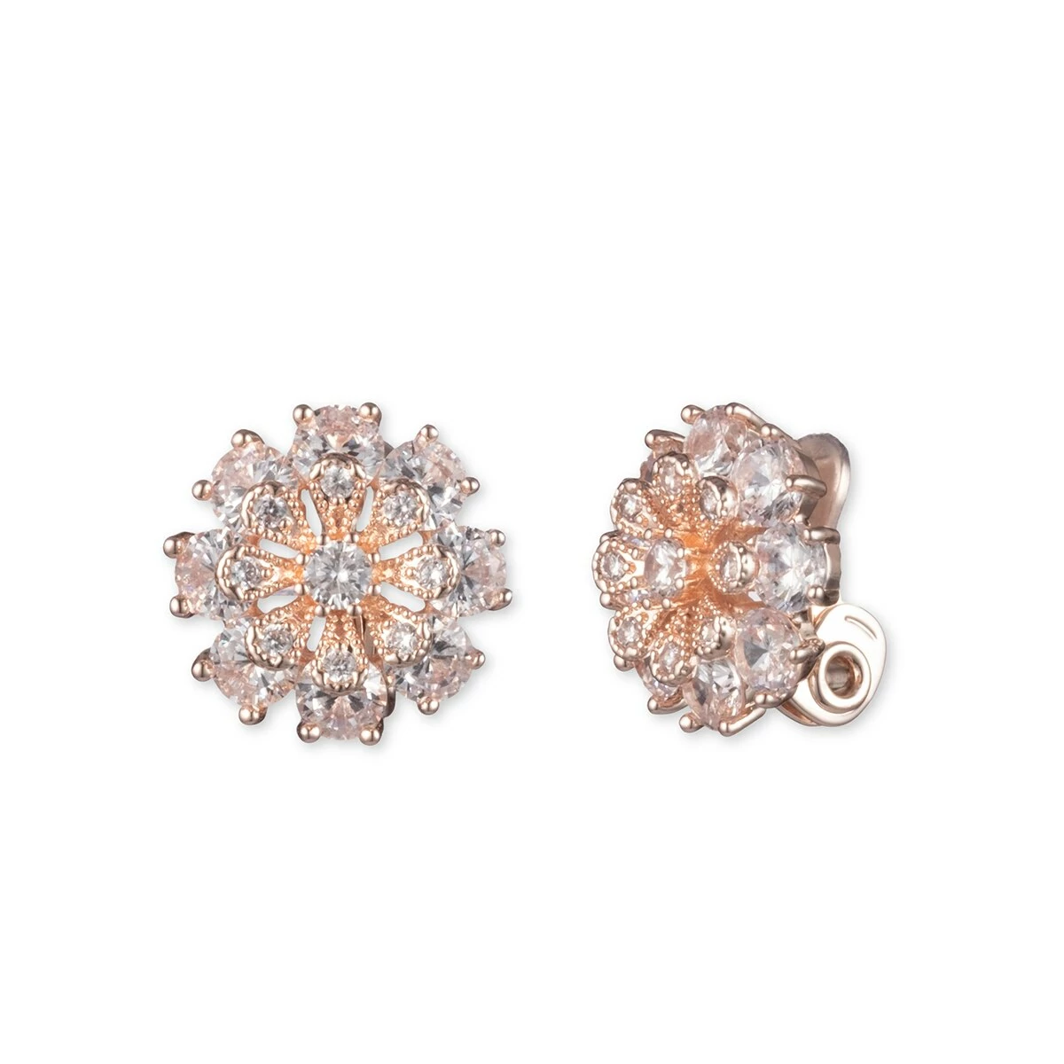 A sweet way to add sparkle, these Anne Klein Cubic zirconia flower button clip earrings in a gold setting detail floral designs.