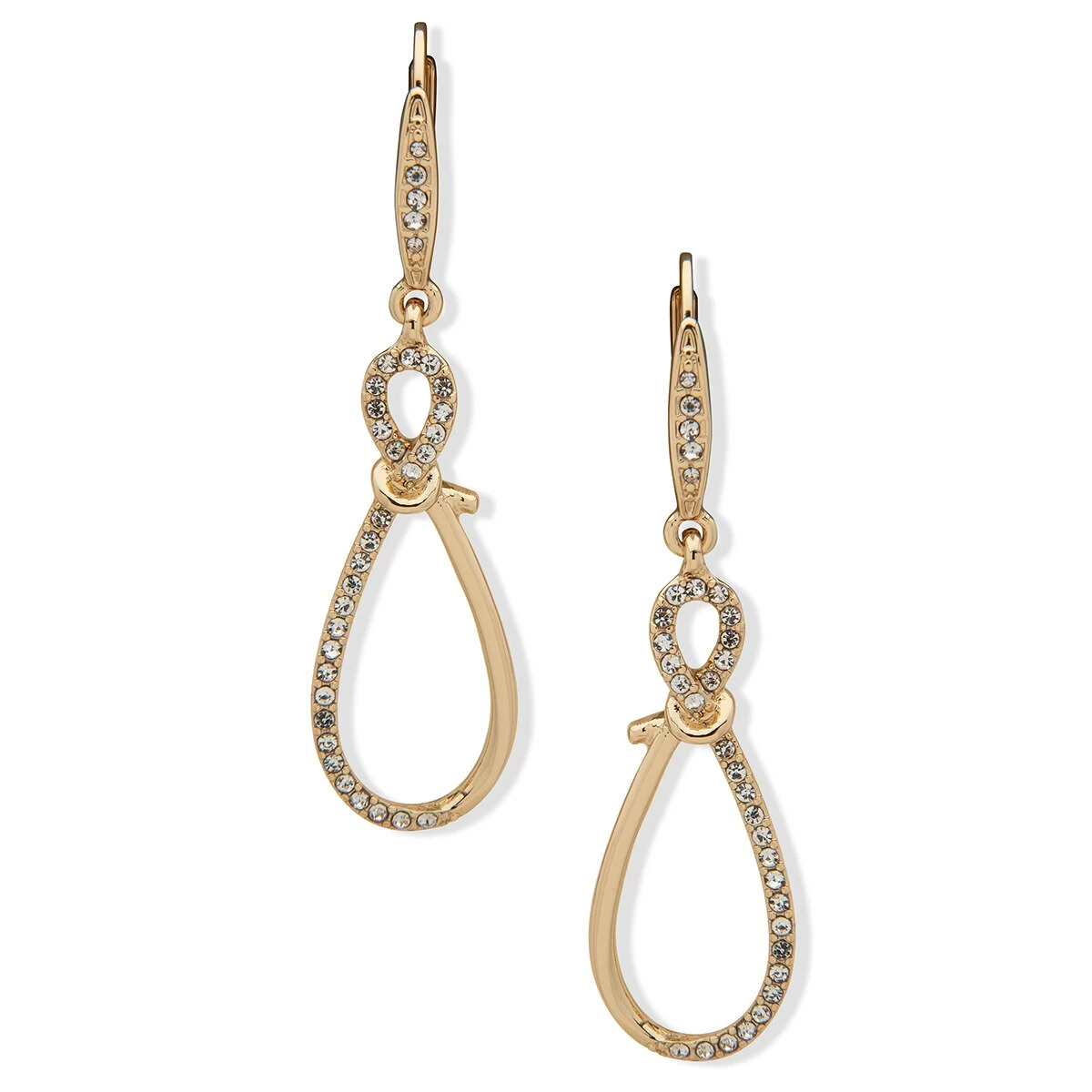 Elevate your eveningwear looks wearing these Anne Klein gold-tone 2.05-inch crystal drop with knot earrings.