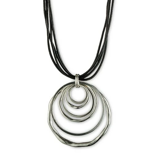 Show off your style with this Anne Klein silver-tone and multi-row leather pendant necklace.