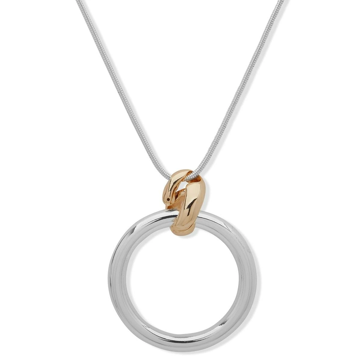 Add a modern and captivating look to your style with the Anne Klein two-tone pendant necklace.