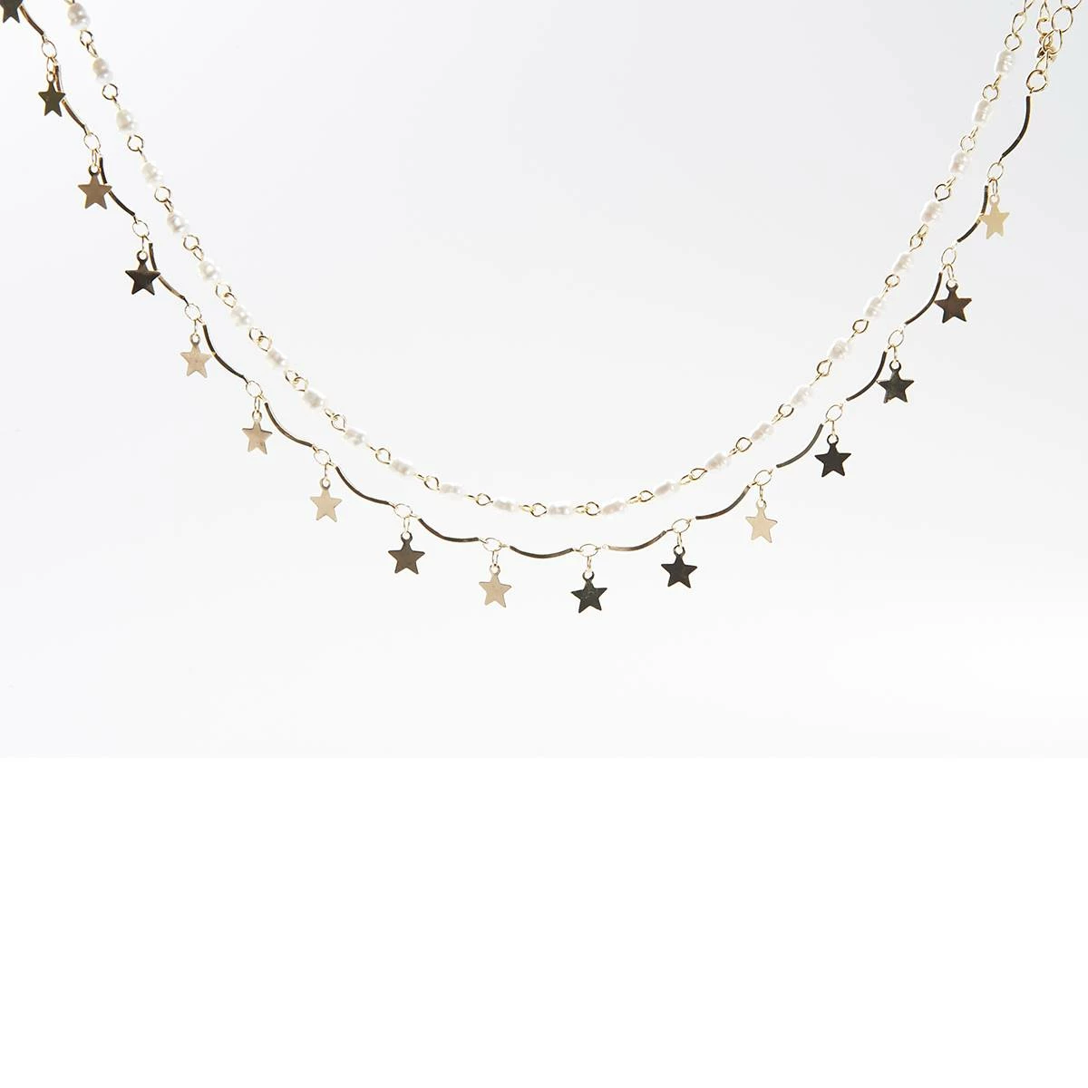 Update your jewelry collection with this Ashley by Ashley Cooperβ’ 2-row rosary pearl, curved bar, and star drop choker.