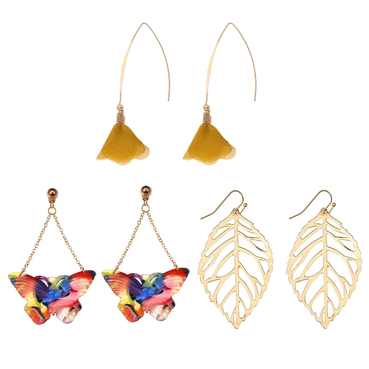 Always have an accessory to match any look with this Ashley by Ashley Cooperβ’ 3-piece butterfly, leaf, and flower dangle earrings set.