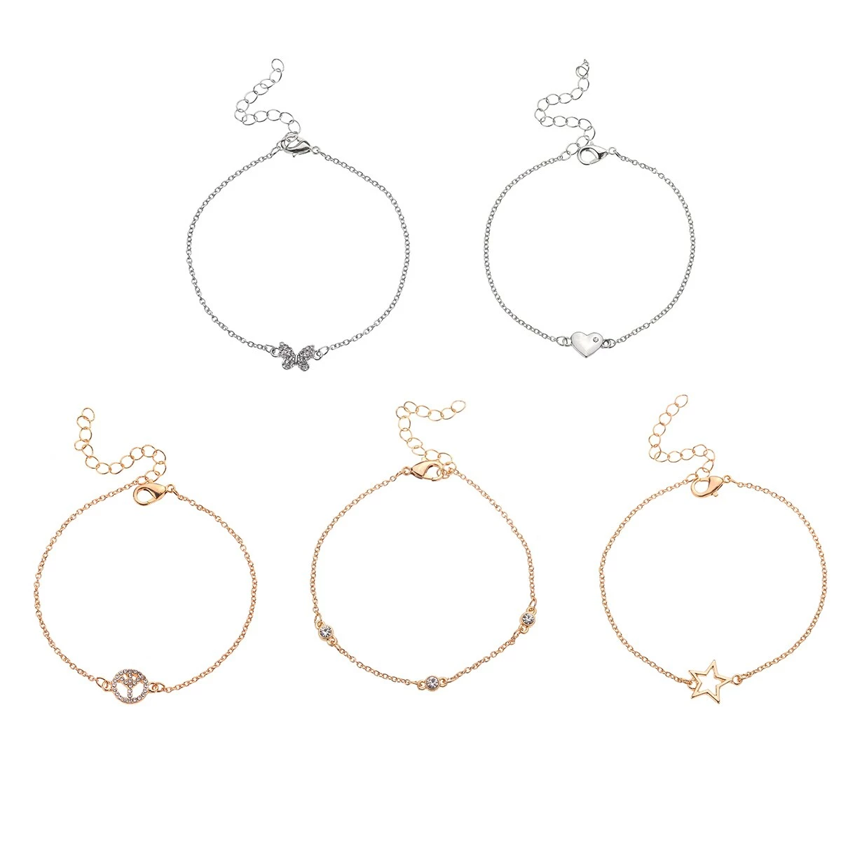 You’ll have plenty of options with this Ashley by Ashley Cooperβ’ 5-piece butterfly heart and star novelty icon bracelet set.