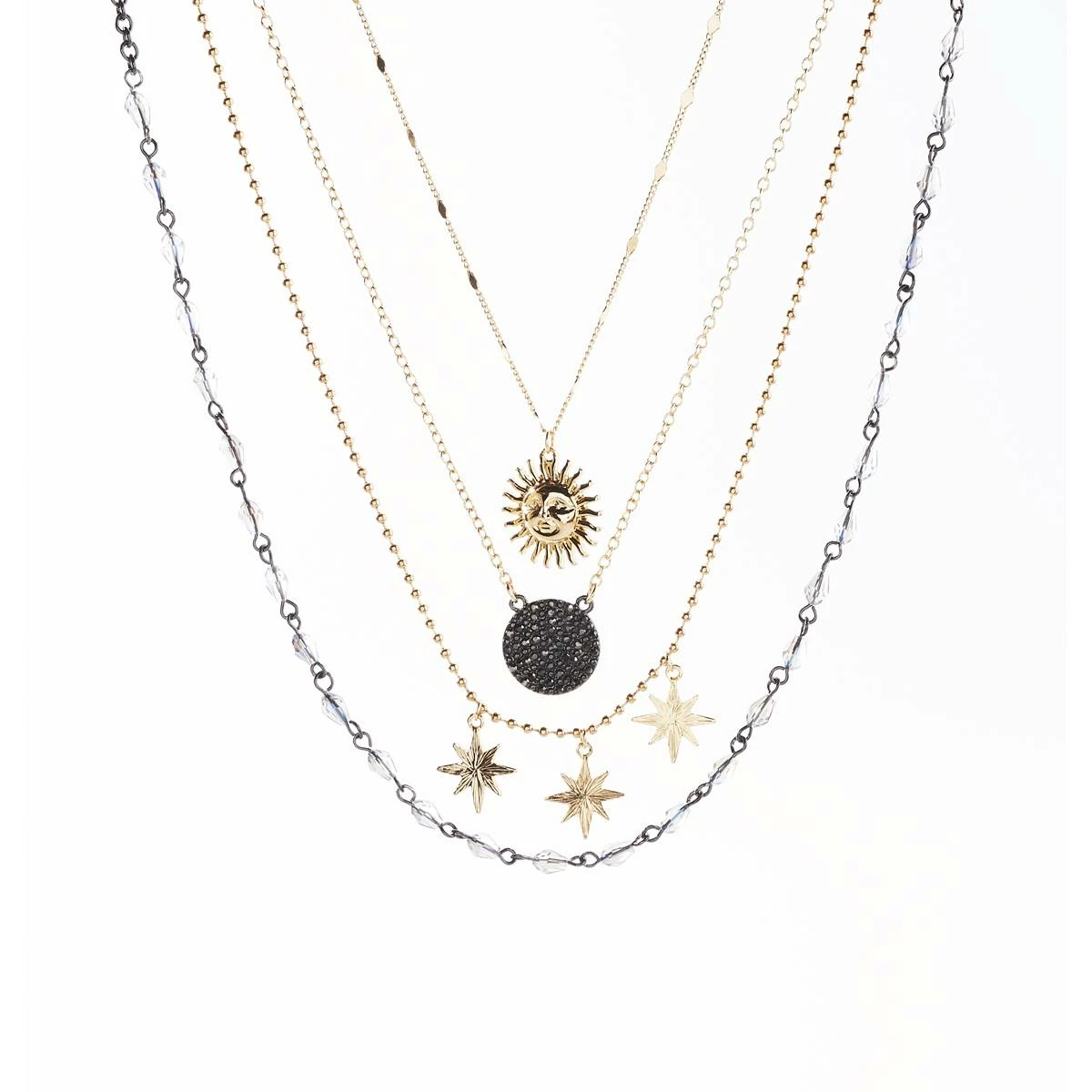 This gorgeous Ashley by Ashley Cooperβ’ celestial layered necklace is a must have for any fashionistas jewelry collection.