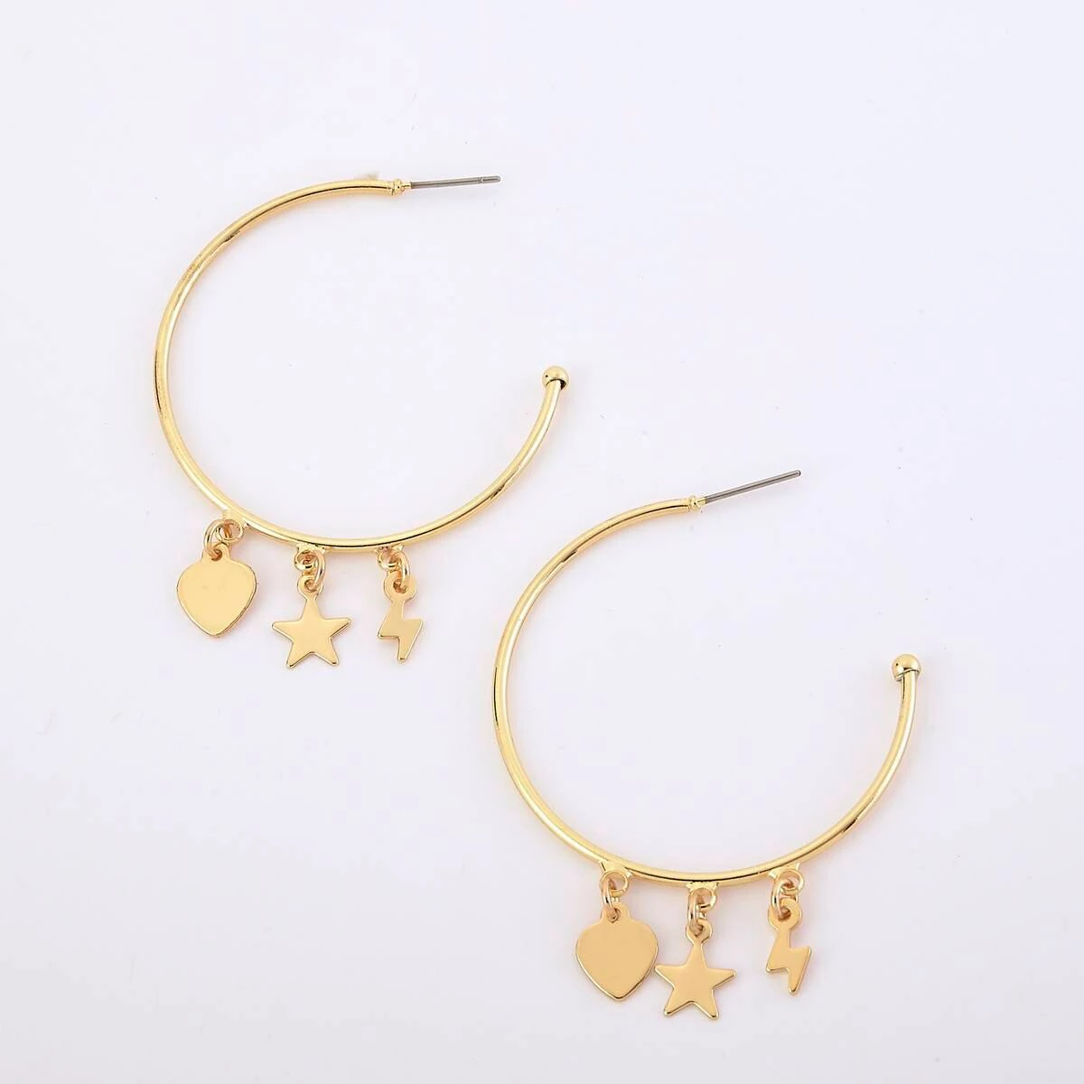 A heart, star, and lightning bolt lend a playful finishing touch to these sweet Ashley by Ashley Cooperβ’ hoop earrings.