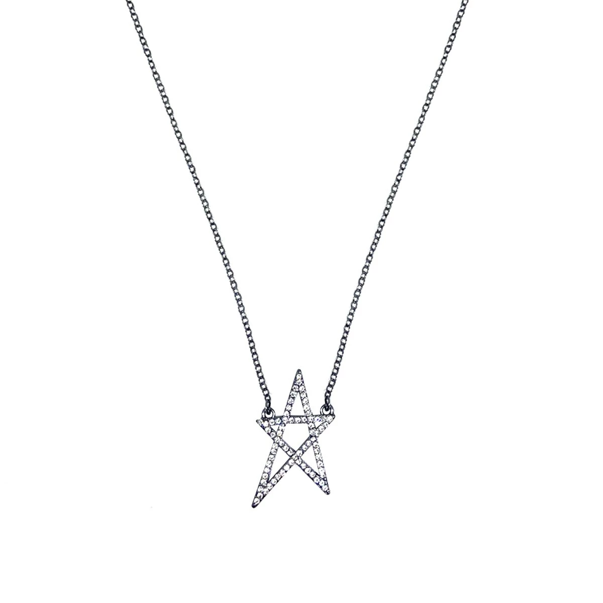 Ashley by Ashley Cooperβ’ hematite necklace with clear glass encrusted pave star.