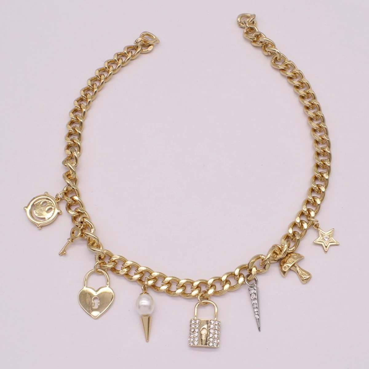 Ashley by Ashley Cooperβ’ charms galore – some glimmering gold and some sparkling with pave crystals – elevate any outfit with this fun and edgy necklace.
